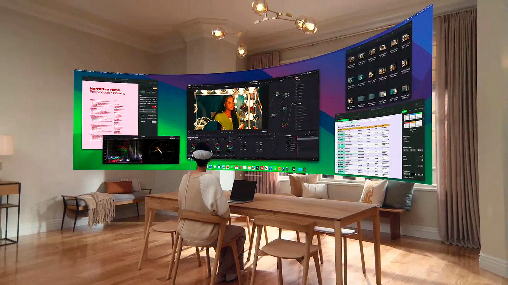 Виртуальный дисплей Mac в visionOS 2 расширится до сверхширокого, эквивалентного двум 4К мониторам. Это реализуется с помощью динамической фовеации, отслеживающей взгляд.